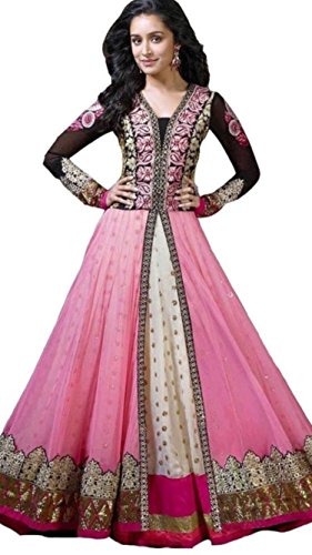 S,B Creation Women's Net Anarkali Suit (Pink_Free Size)