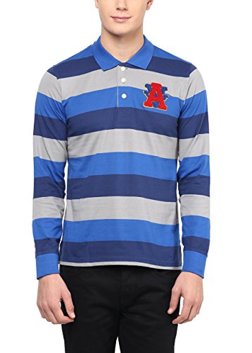 American Crew Men's Premium Jersey Long Sleeve Stripes Polo Navy Blue, Grey & Royal Blue T-Shirt- XXL (AC258BFS-XXL)