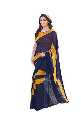 Craftsvilla Blue Georgette Printed Party & Festival Wear Saree - (Women's Clothing Saree For Women Latest Design Sarees New Collection Saree With Blouse Free Size Beautiful Saree For Women Party Wear Festival wear Casual wear Designer Sarees With Blouse Piece Perfect Ethnic wear best offer on sarees 100% Genuine Product)