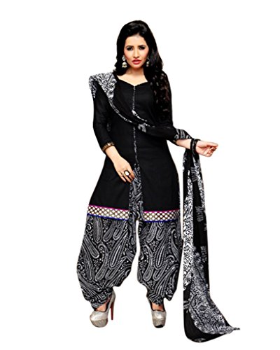 Drapes Women's Cotton Dress Material (DF0449_Black)