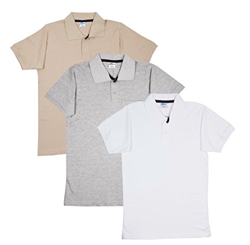 Fleximaa Men's Cotton Polo Collar T-Shirts With Pocket Combo Pack (Pack of 3) - White, Biscuit & Grey Milange Color.