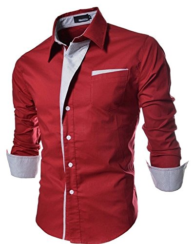 Pearl Ocean Men's Satin Shirt (red party wear shirt-L_Red_Medium)